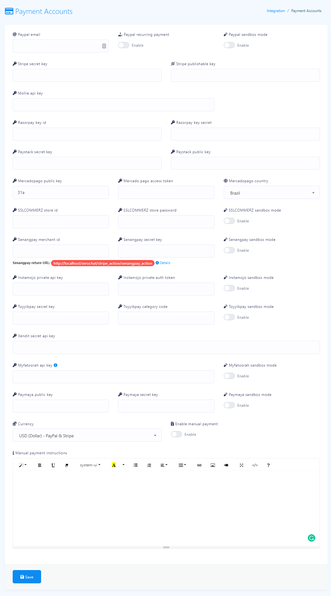 ChatPion is a white-label Saas application. You can sell the service of ChatPion to your end-users— establishing a software service business as your own brand. To complete the process admin have complete the Payment APIs settings. So let's dive into the section.