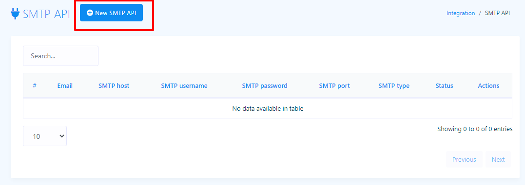 click on the New SMTP API, a modal for adding SMTP will be appear and you'll need the following information to create a new one: