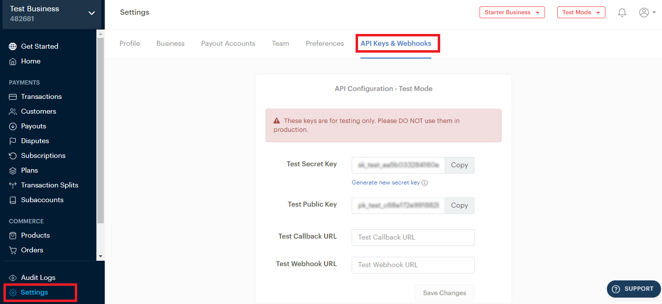 Paystack Secret Key & public key: If you want to integrate paystack payment method then you’ve to put your paystack secret key and public key. Visit Paystack and go to Settings > API Keys & Webhooks and copy your key id and key secret and paste into the corresponding field.