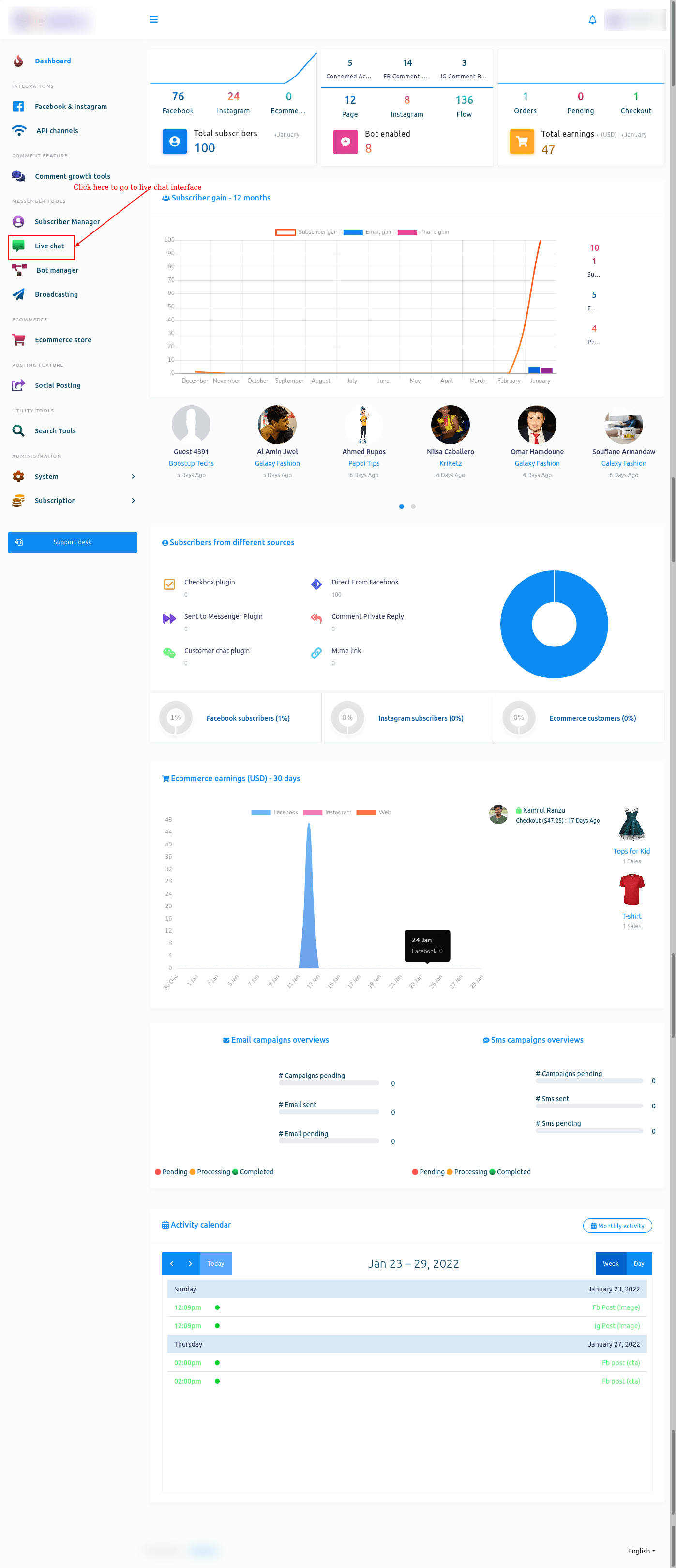 In the subscribers’ list section, you can see the list of subscribers who you have conversed with recently. Also, you can search for a subscriber on the search bar. And by clicking on the reload button, you can reload the Live Chat, though the live chat reloads automatically at times.